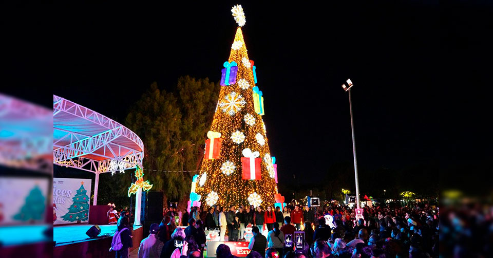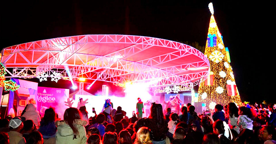 Nuevo Laredo, Tamaulipas. - Más de 25 mil personas se reunieron para acompañar a la presidenta municipal Carmen Lilia Canturosas Villarreal en una de las noches más emotivas del año; el encendido del monumental pino navideño y la inauguración del Viveros Mágico en el recién estrenado Espacio Cultural y Artístico del Parque Viveros.