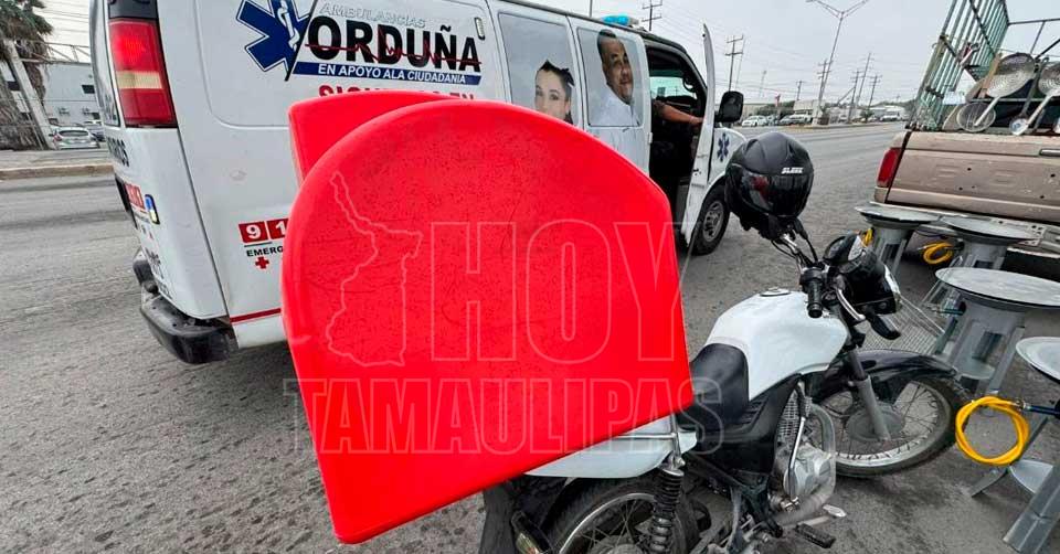 Matamoros, Tamaulipas.– Un repartidor de la cadena Pollo Church, de Ciudad Industrial, derrapó con su motocicleta después de descender el paso a desnivel de la Avenida Lauro Villar en Matamoros, justo frente a la empresa Cepillos, presuntamente debido al pavimento humedecido.
