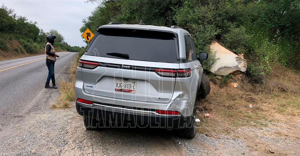 El accidente ocurrió a la altura del kilómetro ocho, donde quedó una camioneta Jeep Grand Cherokee con daños en la parte frontal y en el sistema de suspensión.