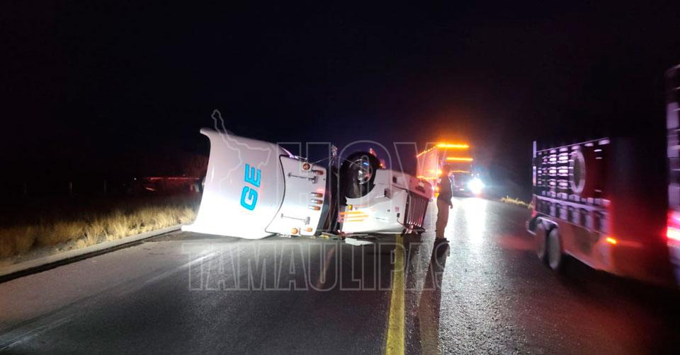 Tula, Tamaulipas. – Un trailero sobrevivió a la volcadura de un tractocamión con doble remolque registrada esta madrugada sobre la Carretera Federal 101, a la altura del kilómetro 44, cerca del paradero Villa 45 en Tula.