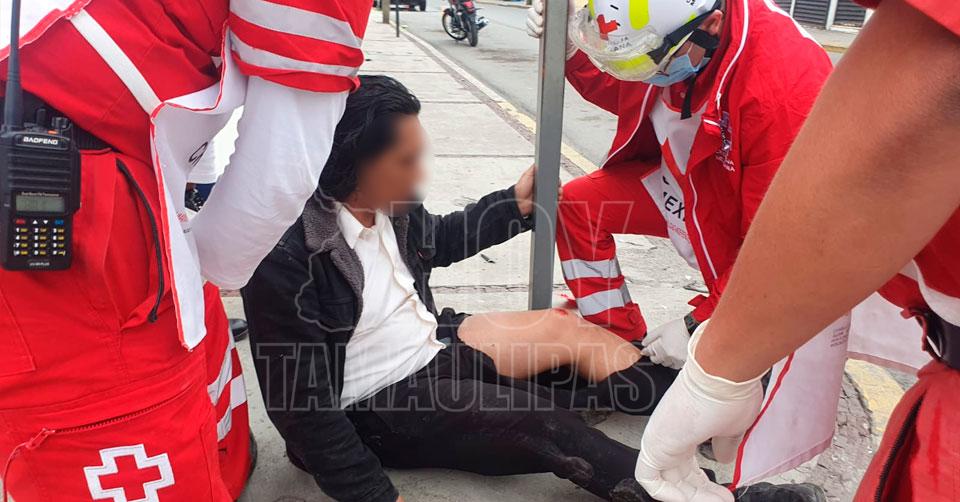 Paramédicos de la Cruz Roja acudieron al lugar para brindarle atención prehospitalaria y posteriormente trasladarlo a un hospital.