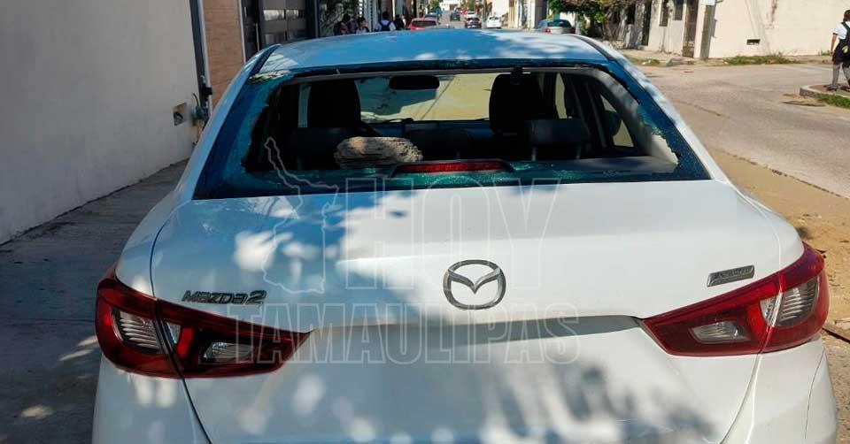 Mujer destrozó con enormes piedras el cristal trasero de un automóvil en Madero