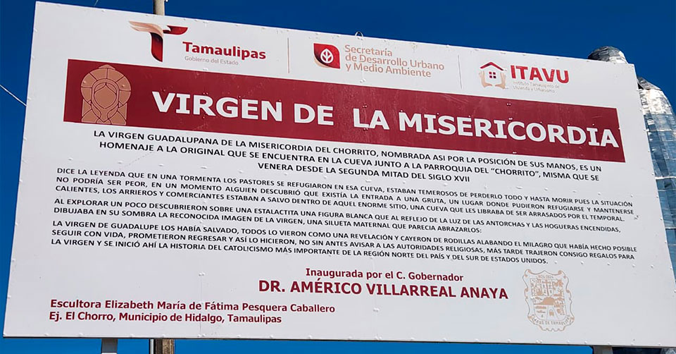 Ciudad Victoria, Tamaulipas. - El próximo 12 de diciembre, a las 12:00 del mediodía será inaugurada la Virgen de la Misericordia en el Santuario de El Chorrito, en el municipio de Hidalgo, Tamaulipas, un proyecto que busca consolidar este sitio como uno de los principales destinos de turismo religioso del noreste de México.