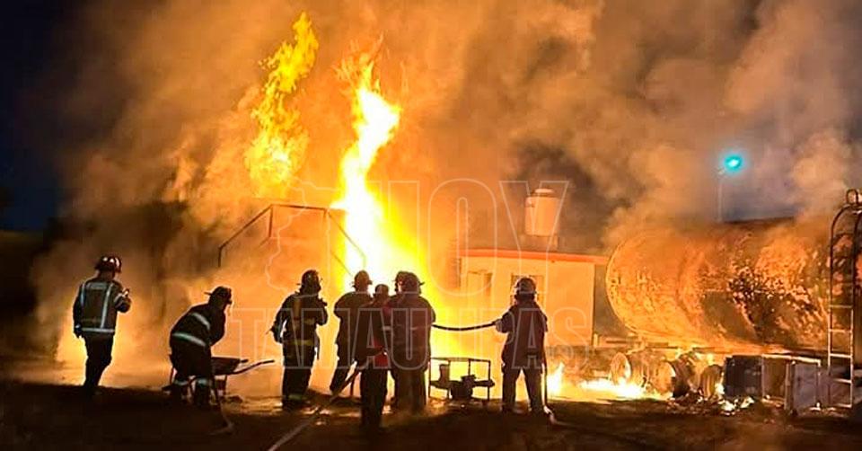 Pipa cargada con diésel ardió en llamas en ejido de Altamira