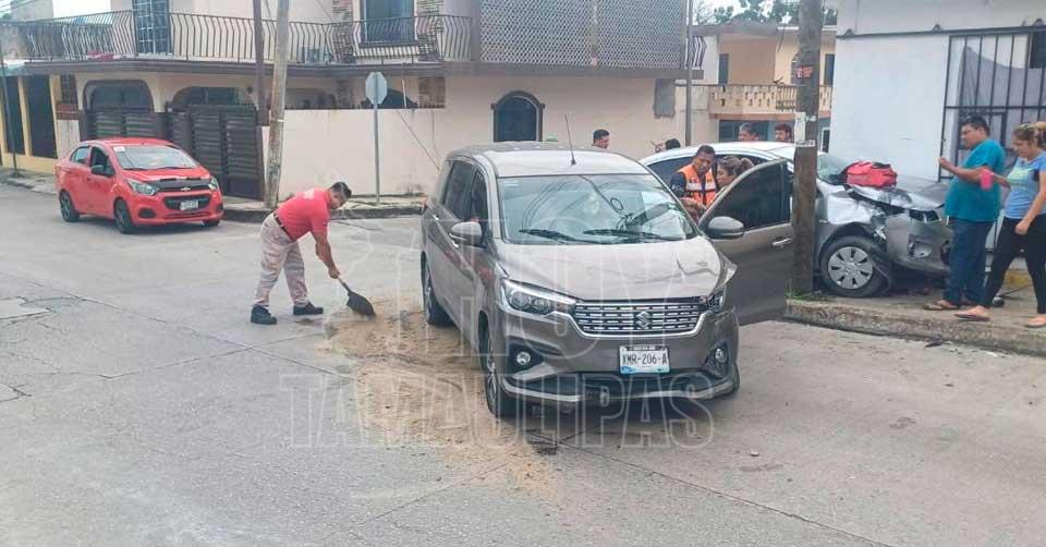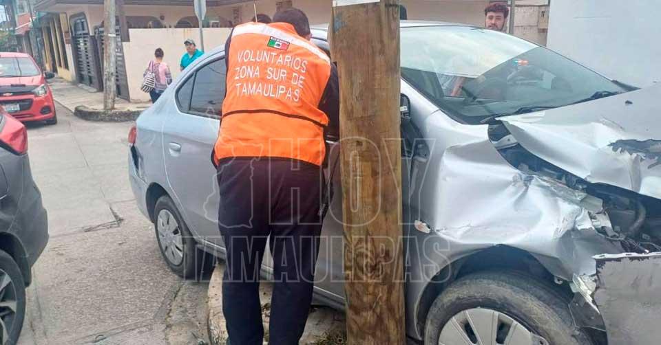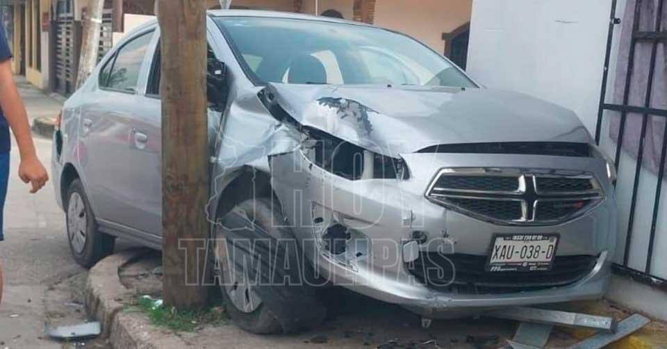 Choque proyecta auto hacia la banqueta y deja 2 lesionados en Tampico