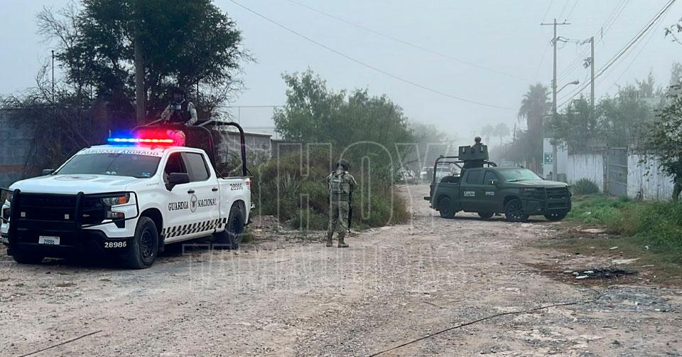 Elementos de la Defensa ingresando a la vivienda donde fueron localizados los cuerpos sin vida de cuatro hombres y una mujer en la colonia Campestre