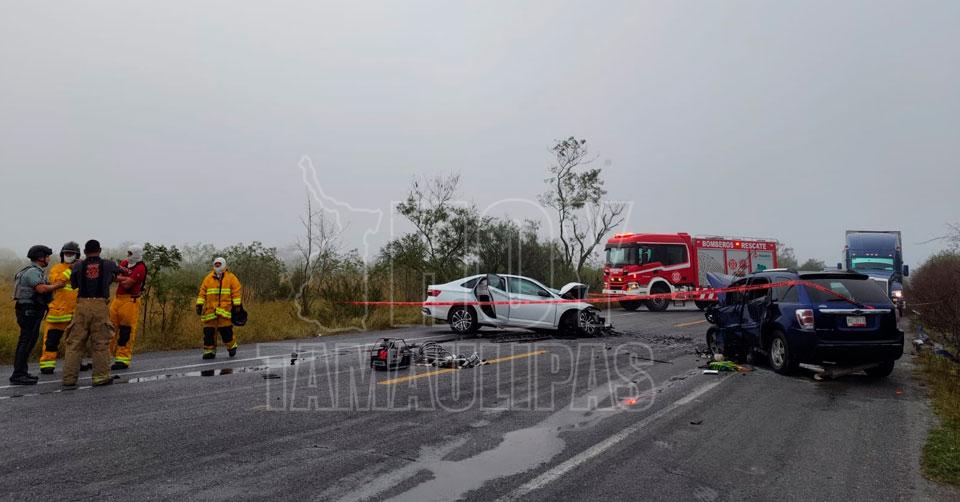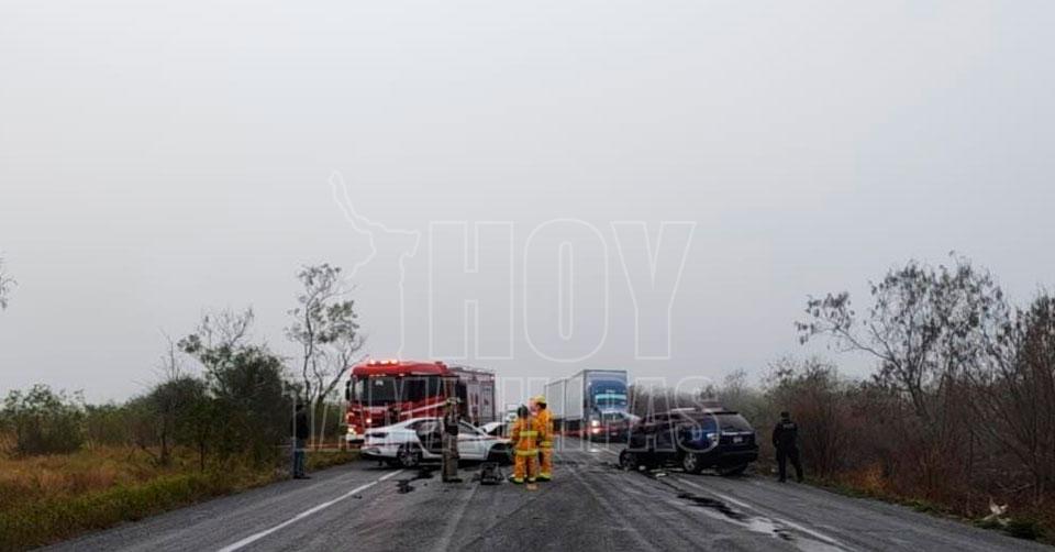 San Fernando, Tamaulipas.- Derivado de un choque entre dos vehículos, la circulación se encuentra cerrada en la Carretera Federal 101 Victoria-Matamoros a la altura del municipio de San Fernando.