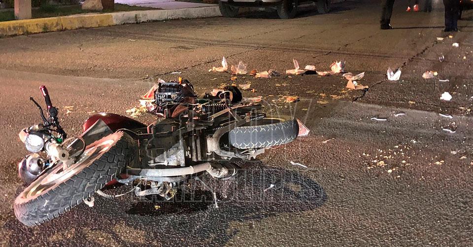 Ciudad Victoria, Tamaulipas.- Decenas de postres quedaron esparcidos sobre el pavimento luego de que un motociclista, que los trasladaba para su entrega, se impactara contra una camioneta en el crucero del 10 Chihuahua en Ciudad Victoria.