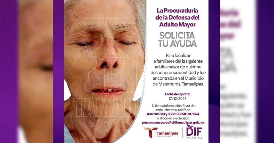 Matamoros, Tamaulipas. - La Procuraduría del Sistema DIF ya tomó conocimiento del ingreso de la mujer de la tercera edad que fue abandonada sobre el kilómetro 15 de la carretera a Playa Bagdad en Matamoros, caso que podría configurarse como abandono de persona y tentativa de homicidio doloso.