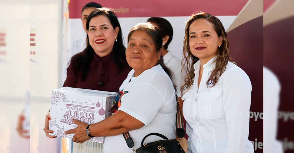 "Reciban este apapacho de la Doctora María de Villarreal que junto al Gobernador Américo Villarreal Anaya les envían, desean que pasen una feliz navidad y con el compromiso de que seguiremos trabajando el próximo año, buscando mejorar su calidad de vida, autonomía y participación social porque ustedes son ejemplo de fortaleza para los jóvenes de hoy", les dijo al entregar la dotación navideña "Un DIFciembre para recordar ".