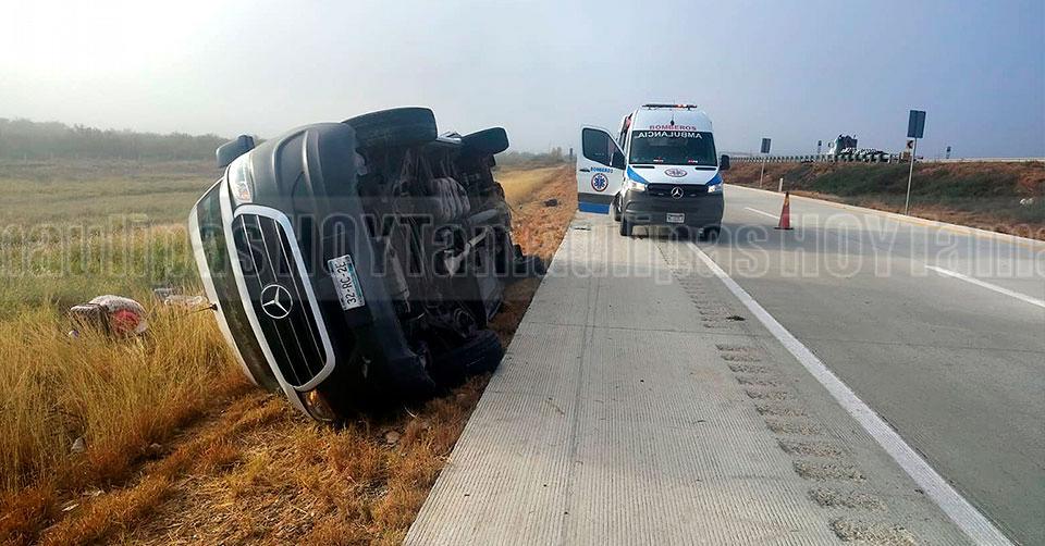 Vuelca camioneta con potosinos en autopista a Nuevo Laredo; tres heridos
