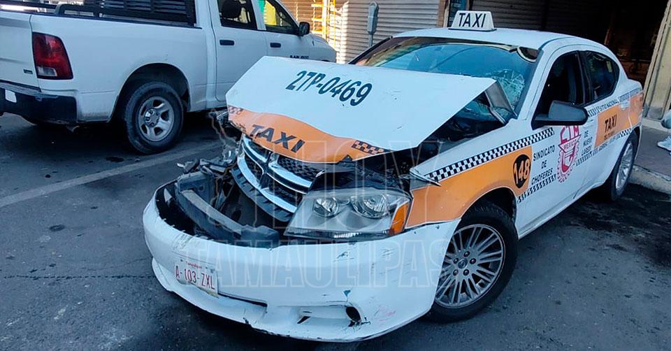 Taxista embiste triciclo de comida, choca camioneta y deja 5 heridos en Nuevo Laredo