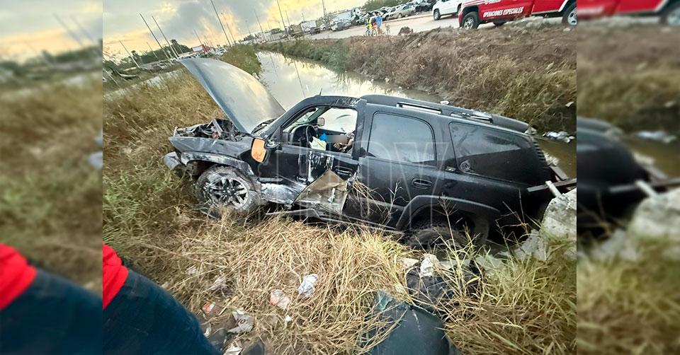 Matamoros, Tamaulipas. – Un hombre murió esta mañana al perder el control de su camioneta y se impactó contra una barda para finalmente caer a un canal en Matamoros.