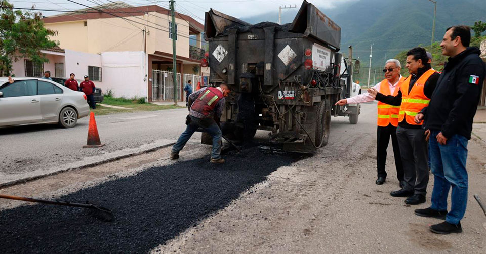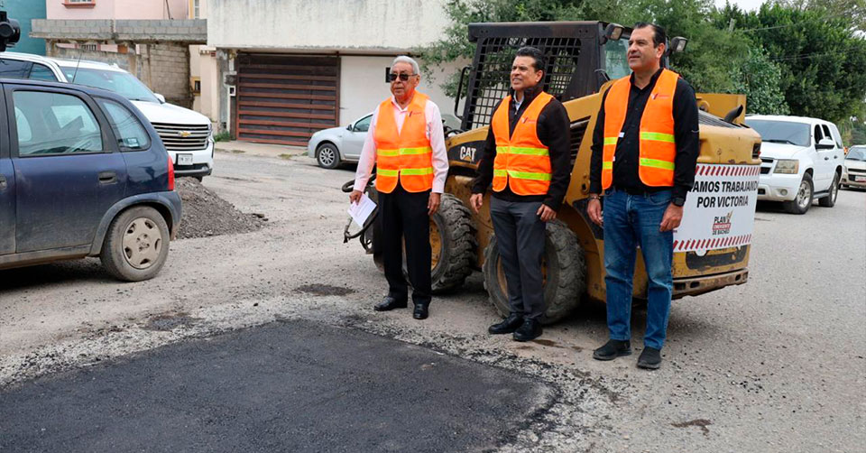 En compañía de los secretarios de Obras Públicas del Municipio, Eusebio Alfaro Reyna, y del Ayuntamiento, Hugo Reséndez Silva, verificaron el proceso de reparación y calidad de restauración de la carpeta asfáltica dañada por el constante tráfico vehicular y lluvias.
