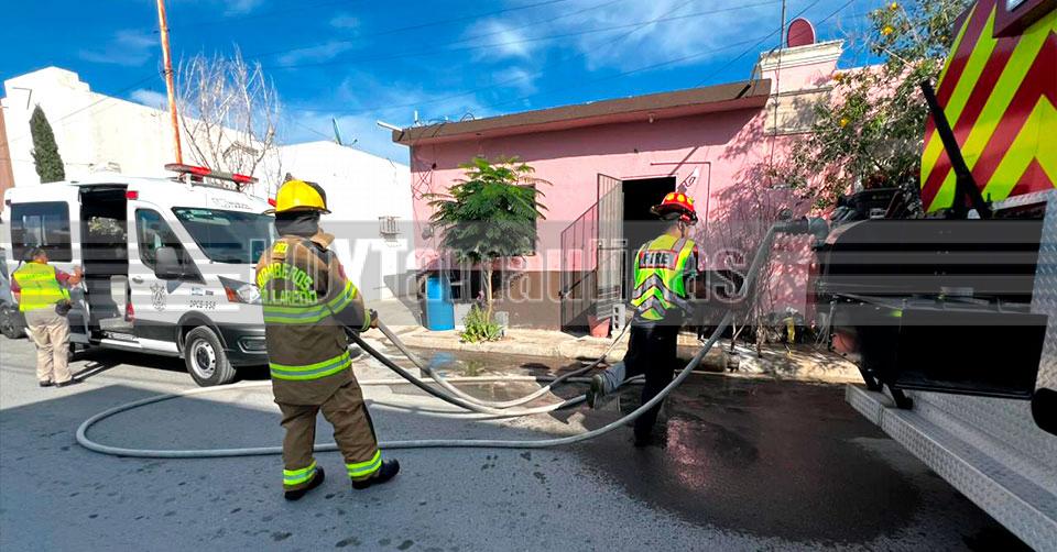 Al lugar acudieron elementos de Protección Civil y Bomberos, quienes confirmaron que el flamazo se originó en un pasillo de la propiedad, consumiendo una escalera y diversos enseres.