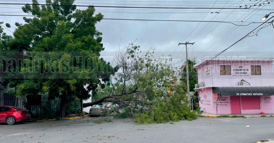 Ciudad Victoria, Tamaulipas. – El ingreso del frente frío número 25 la mañana de este lunes provocó múltiples afectaciones en la capital tamaulipeca, entre ellas la caída de árboles, daños a infraestructura urbana, interrupciones en el suministro de energía eléctrica y un severo caos vehicular.
