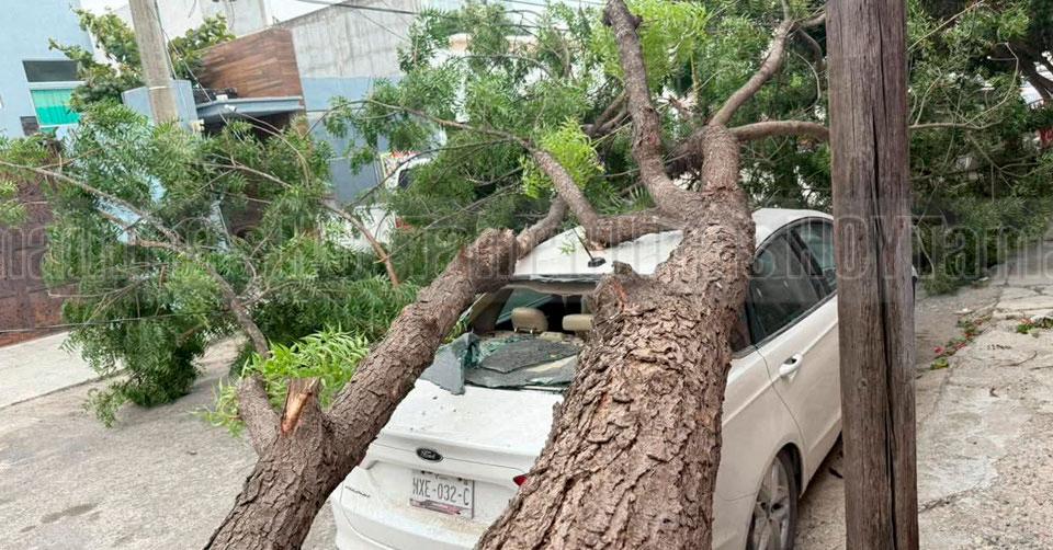 Los fuertes vientos derribaron árboles y estructuras en distintos puntos de la ciudad. En el Paseo Méndez, las rachas tumbaron varios árboles y adornos navideños, generando riesgos para peatones y automovilistas. En algunos casos, los árboles caídos impactaron automóviles que se encontraban estacionados o en circulación, ocasionando daños materiales.