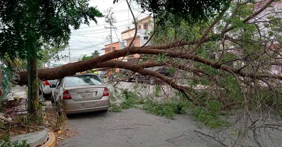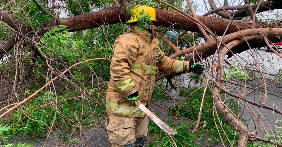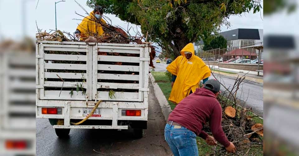 Personal de Protección Civil, Parques y Jardines de Servicios Públicos y Desarrollo Urbano, realizaron trabajos de poda y retiro de árboles caídos en la calle 7 Ceros Hidalgo y Juárez; avenida 24, calle Esmeralda de la colonia Loma Alta y 9 y 10 Canales de la colonia Mainero.
