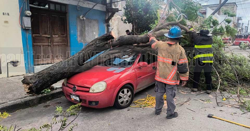 La ráfagas de viento ocasionaron también que un árbol y un poste se vinieran abajo en la calle Baja California, entre Bolivia y Salvador Díaz Mirón de Ciudad Madero, cayendo encima de un automóvil Chevrolet Chevy color rojo que permanecía estacionado.