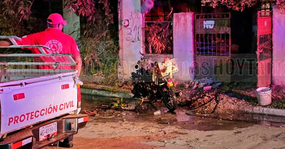 Lo agarraron a “cadenazos” y le quemaron su moto en El Mante