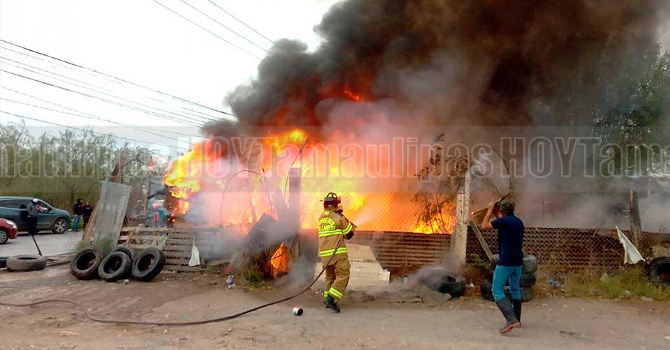 Nuevo Laredo, Tamaulipas.— Una modesta vulcanizadora quedó reducida a cenizas la mañana de este martes, luego de que un voraz incendio se registró en el sector poniente de Nuevo Laredo.