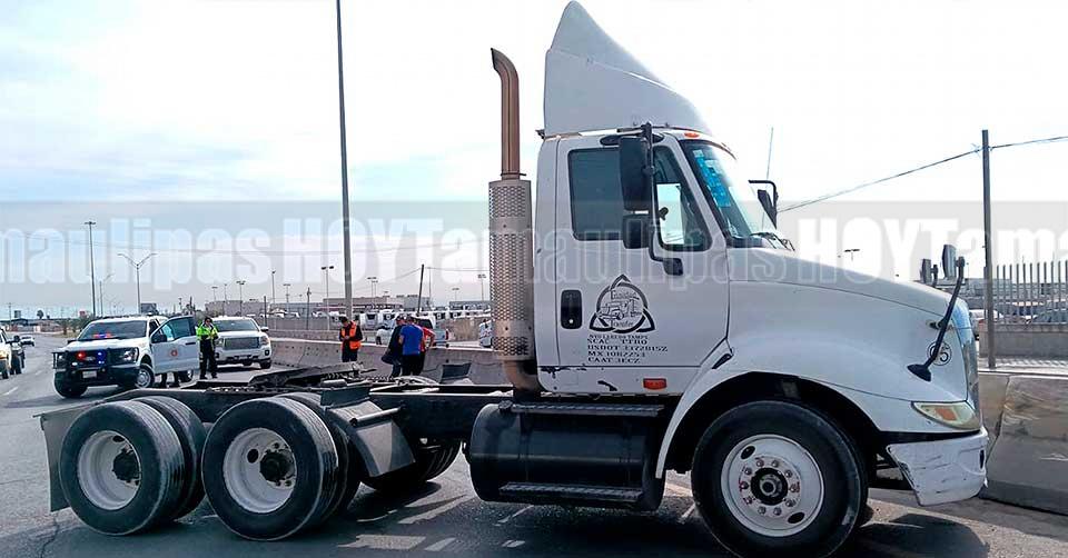 Nuevo Laredo, Tamaulipas.— Un descuido al volante por parte del operador de un tractocamión derivó en un accidente vial la tarde de este martes sobre la Carretera Aeropuerto en Nuevo Laredo, dejando como saldo considerables daños materiales.
