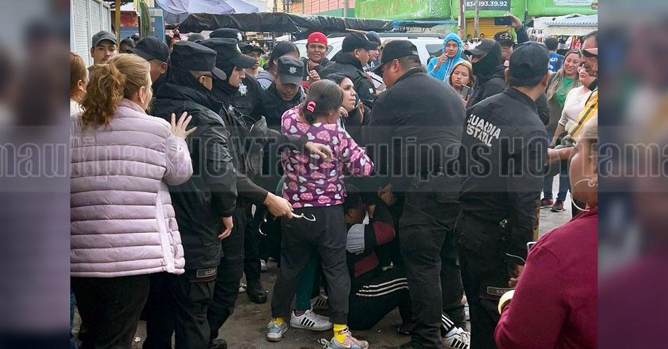 Ciudad Victoria, Tamaulipas.- Una menor de edad resultó lesionada luego que se registrara una trifulca entre elementos de la Policía Estatal y locatarios del Mercado Argüelles ubicado en el centro de Ciudad Victoria.