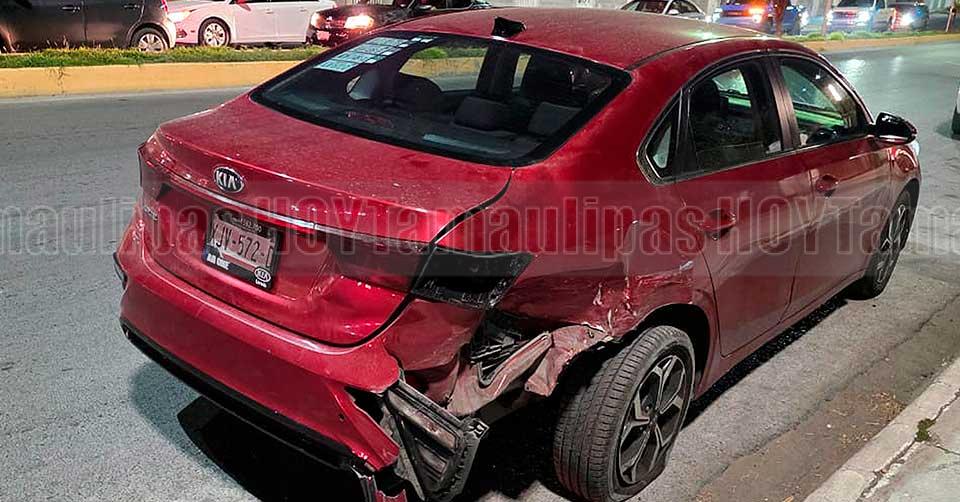 Nuevo Laredo, Tamaulipas.— La peligrosa combinación de alcohol y volante dejó cuantiosos daños materiales luego de que un conductor en estado de ebriedad embistió a un automovilista que esperaba la luz verde del semáforo.
