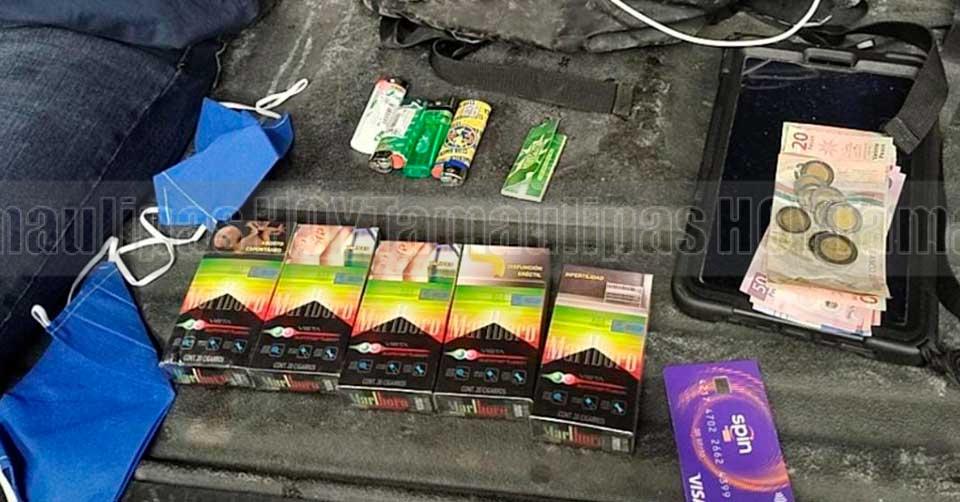Al realizarle una inspección, se le encontró en posesión del monto exacto del efectivo reportado, cinco cajetillas de cigarros, cuatro encendedores, una tarjeta y una tableta electrónica.