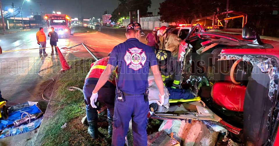 El fuerte percance se registró esta madrugada en la Avenida Armada de México, conocida como carretera vieja a Ciudad Mante, entre las calles Matamoros y Cielo de la colonia Justo Sierra en el municipio de Altamira, poco antes de llegar a la llamada "Y" Griega.