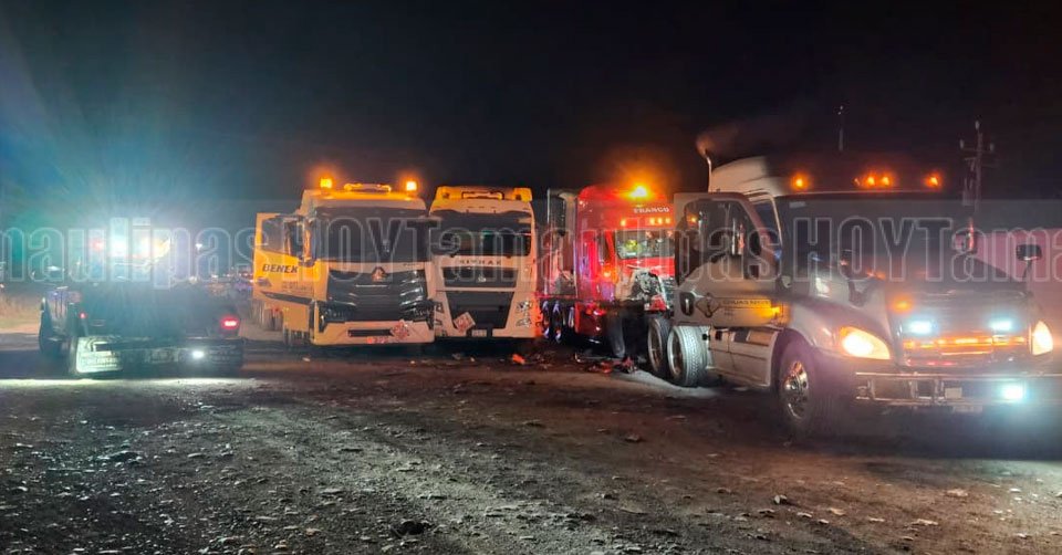 Ciudad Victoria, Tamaulipas. – Un accidente múltiple que involucró a un tráiler, dos unidades tipo pipa cargadas con más de 60 mil litros de gasolina cada una y una camioneta Ford F-150, se registró la noche de este domingo en el entronque de la carretera Rumbo Nuevo.