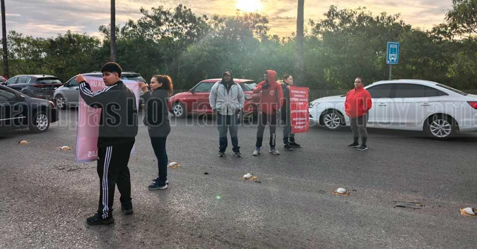 Ciudad Victoria, Tamaulipas. - Familiares y personas cercanas a Carlos, el hombre detenido por su presunta participación en el caso de abuso sexual contra dos médicas residentes del Hospital Infantil de Tamaulipas, se manifestaron este día afuera de la Normal Básica de Ciudad Victoria para exigir su liberación y denunciar lo que califican como una detención injusta.