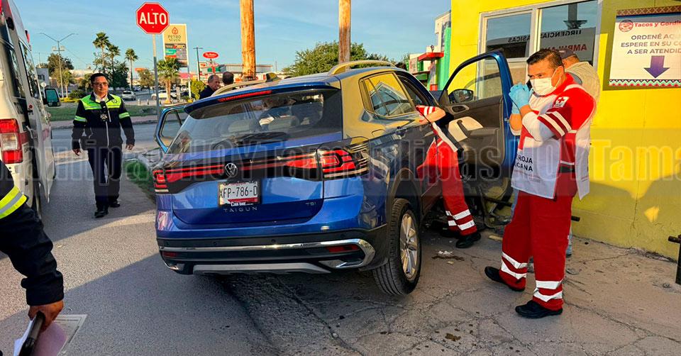 Reynosa, Tamaulipas. — Una mujer de la tercera edad resultó lesionada, luego de que el vehículo que conducía se impactó contra la barda de un negocio, tras ser chocada por otra unidad cuyo conductor se dio a la fuga.