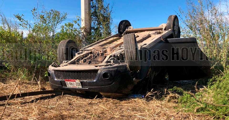 Tras salirse de la superficie asfáltica, el automóvil se proyectó hacia un área de matorrales, donde terminó volcado con las llantas hacia arriba.