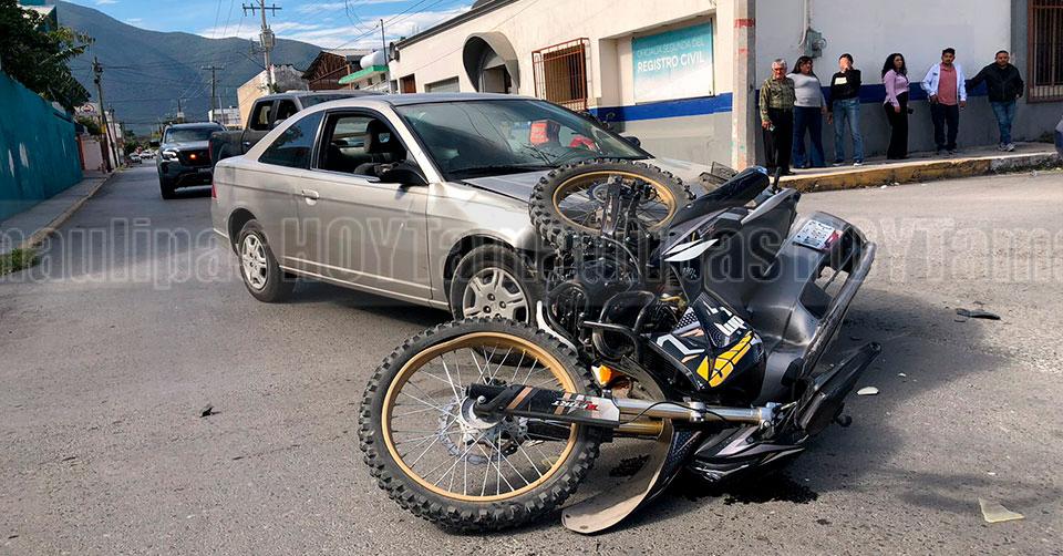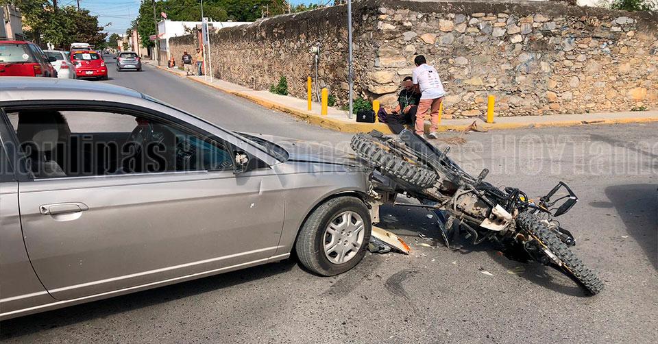Motociclista resulta lesionado tras choque con automóvil en Ciudad Victoria