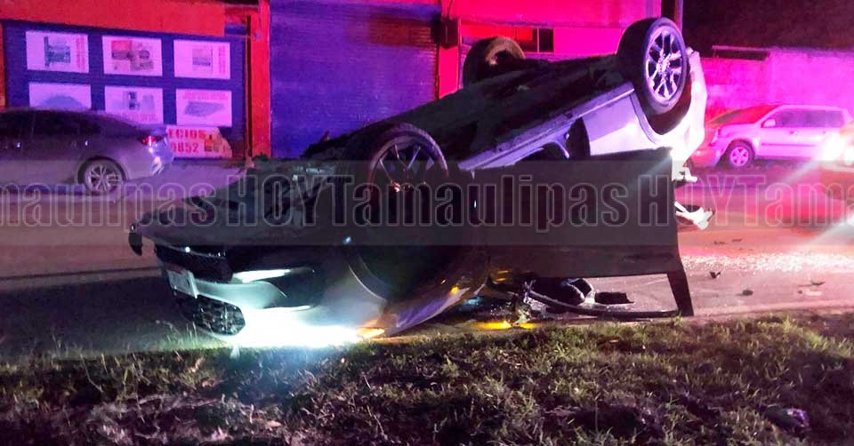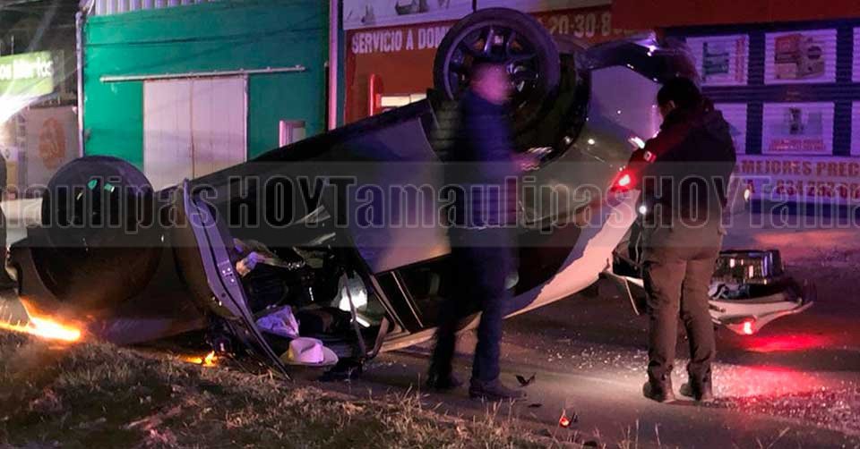 Volcadura deja dos lesionados en libramiento Portes Gil en Ciudad Victoria