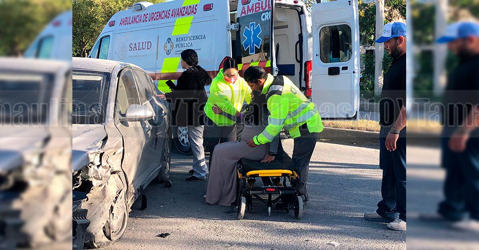 Ciudad Victoria, Tamaulipas. – Una mujer resultó lesionada y fue trasladada a un hospital luego de un choque múltiple registrado en el cruce de la calle Patriotismo con la avenida de la Unidad en Ciudad Victoria.