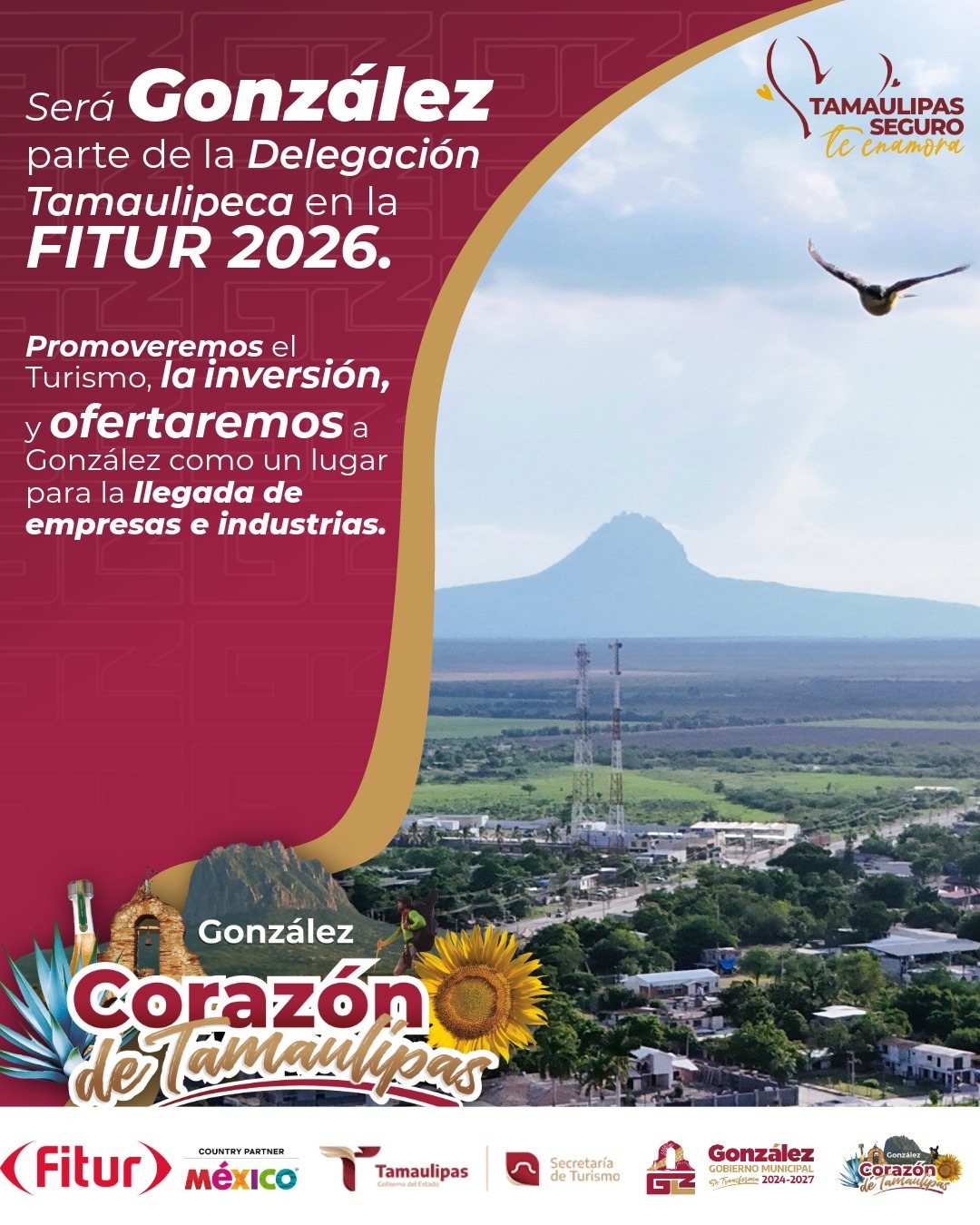 González, Tamaulipas. – El Gobierno Municipal de González, encabezado por el Dr. Miguel Alejandro Zúñiga Rodríguez, anunció su participación oficial dentro de la Delegación Tamaulipeca que asistirá a la Feria Internacional de Turismo (FITUR 2026) en Madrid, España; esto a invitación del Gobernador del Estado Dr. Américo Villarreal Anaya a través de la Secretaría de Turismo.