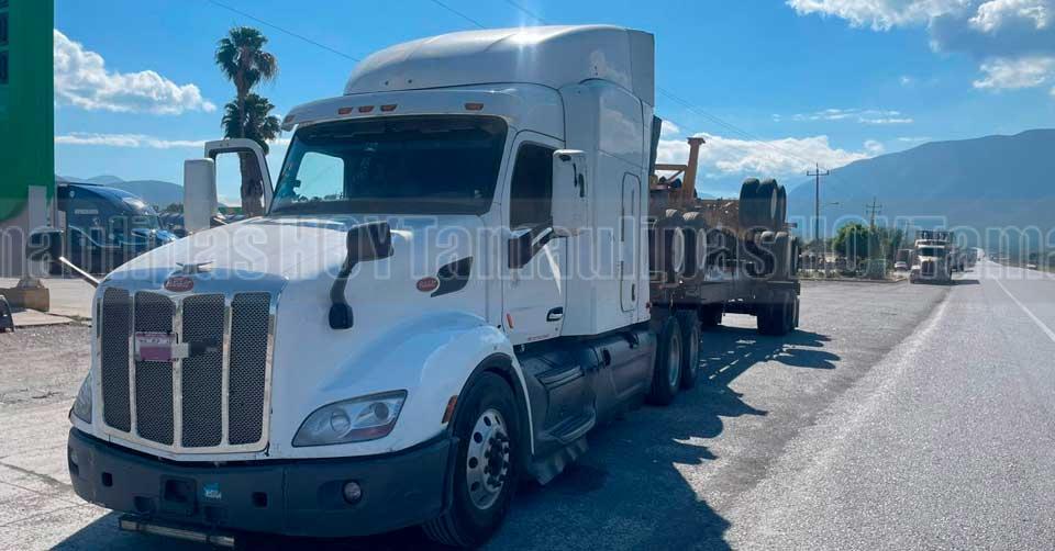Ciudad Victoria, Tamaulipas. – Durante recorridos de seguridad y vigilancia sobre la Carretera Estatal 126 Rumbo Nuevo, en el tramo Juan Capitán–El Chihue, personal de la Dirección de Tránsito Estatal aseguró un tractocamión que cargaba contenedores que circulaban con datos de identificación presuntamente manipulados.