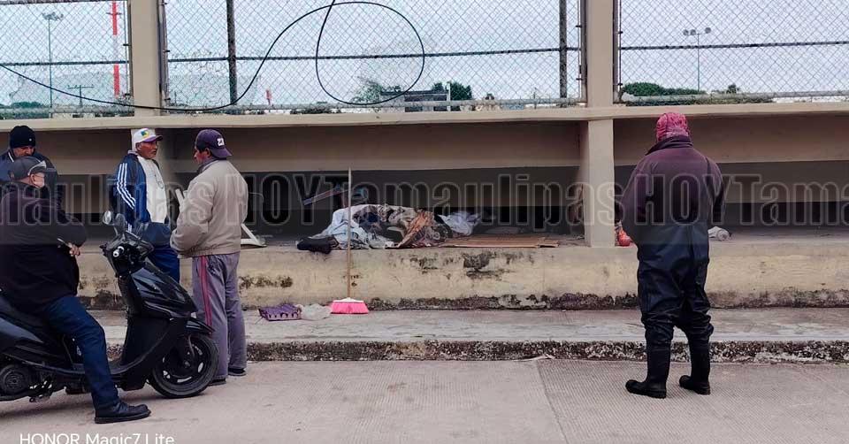 Tampico, Tamaulipas. – Un hombre en situación de calle perdió la vida presuntamente a causa de las bajas temperaturas registradas durante la madrugada y fue encontrado sin vida la mañana de este lunes bajo las gradas de un campo de béisbol, en el sector de Tancol, al norte de Tampico.