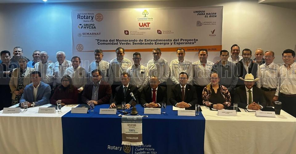 Ciudad Victoria, Tamaulipas .- El Club Rotario Ciudad Victoria, como organismo impulsor y eje articulador del proyecto Comunidad Verde, encabezó la firma del Memorando de Entendimiento (MOU) que formaliza una alianza interinstitucional para fortalecer la restauración ambiental urbana, la educación ambiental y la participación comunitaria en la capital del estado.