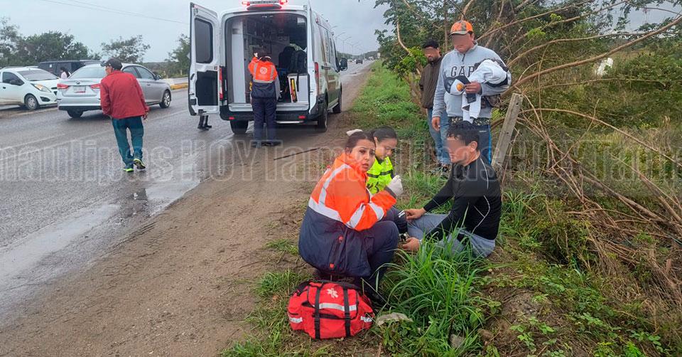 El incidente ocurrió esta tarde de domingo en el municipio de Ciudad Madero, lugar al que se movilizaron elementos de Tránsito para tomar conocimiento de los hechos y paramédicos de Protección Civil, a fin de auxiliar al afectado.