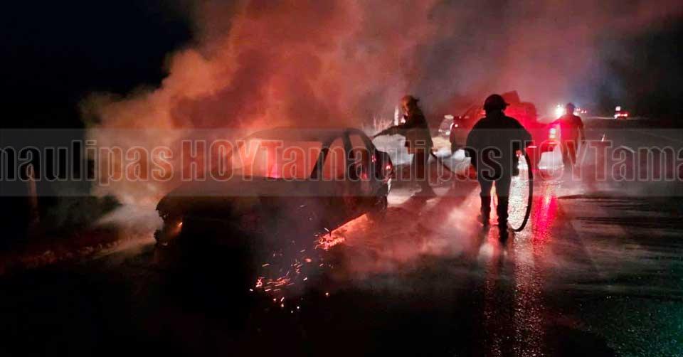 Ciudad Victoria, Tamaulipas. - Personal del Cuerpo de Bomberos atendió el reporte de un incendio de vehículo a la altura del kilómetro 10 aproximado de la carretera a Monterrey.