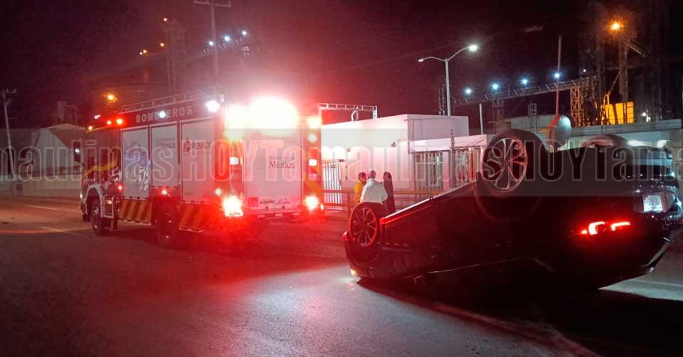 Altamira, Tamaulipas.-Aparatosa volcadura protagonizó antes del amanecer una mujer que conducía una camioneta de reciente modelo, al impactarse contra un poste del servicio de alumbrado público que fue derribado.