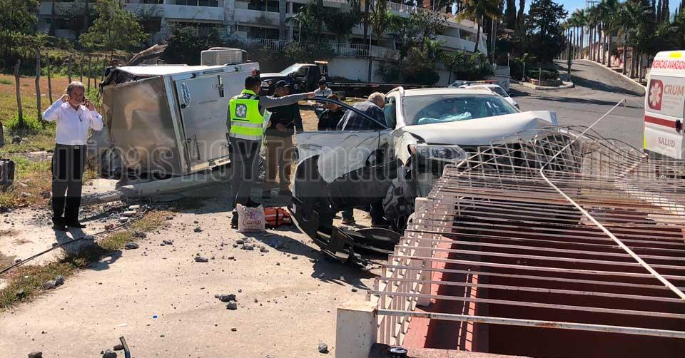 En la unidad viajaban también dos perros, los cuales no presentaron lesiones. La camioneta quedó severamente dañada y el remolque terminó volcado sobre la vialidad.