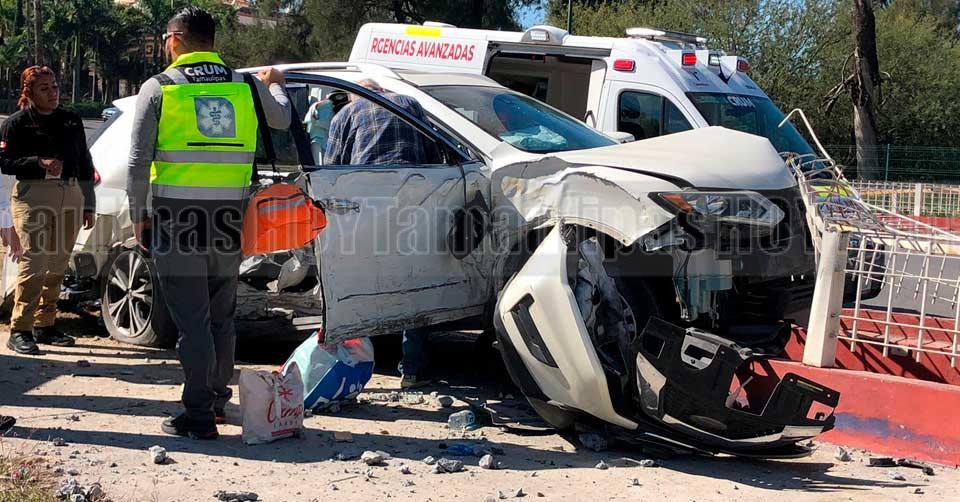 Ciudad Victoria, Tamaulipas.– Por manejar a exceso de velocidad, un ciudadano estadounidense de la tercera edad perdió el control de la camioneta que conducía mientras remolcaba una tráila, lo que provocó un aparatoso choque y volcadura frente al Santuario de la Virgen de Guadalupe, dejando como saldo una mujer lesionada y cuantiosos daños materiales.