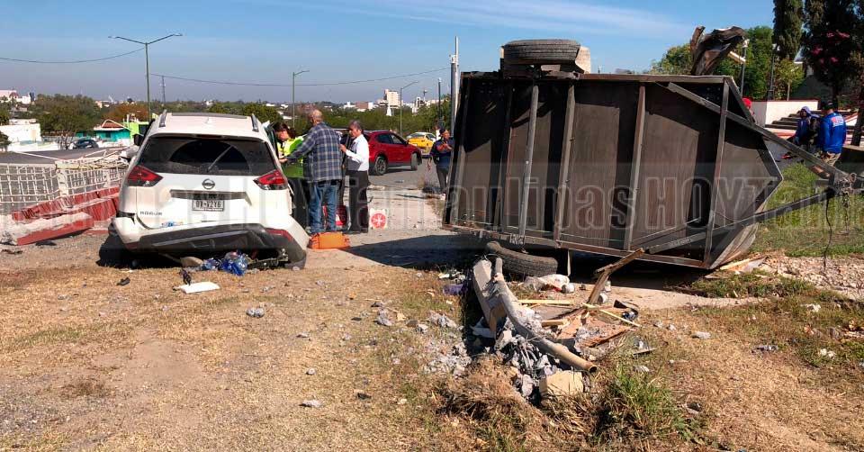 El accidente se registró cuando la unidad descendía por la pendiente conocida como La Loma y, al tomar una curva, el remolque se desestabilizó y comenzó a “coleársele” a la camioneta.
