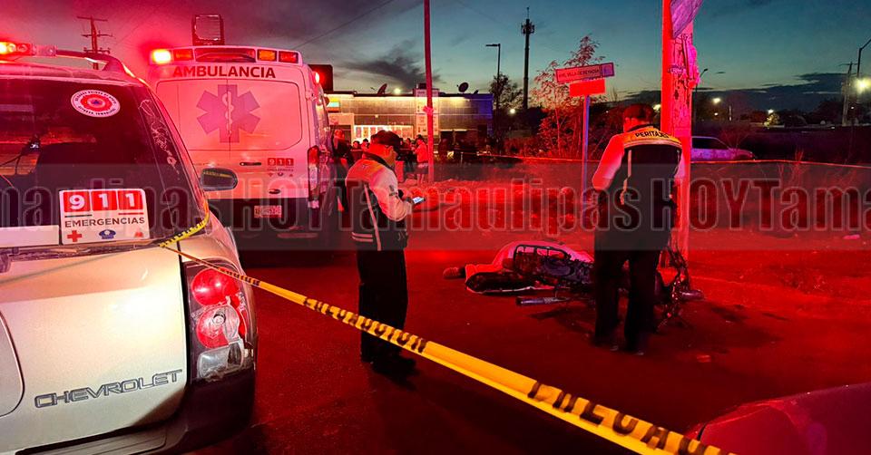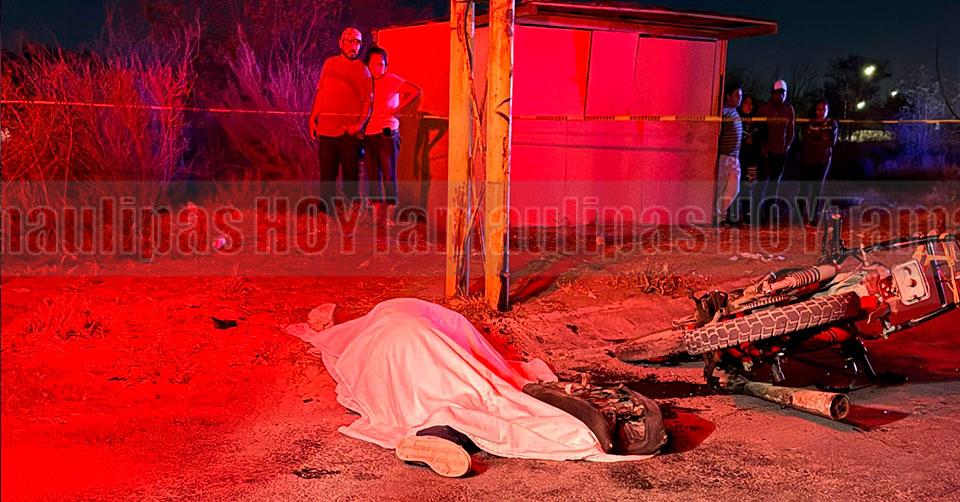 Reynosa, Tamaulipas. — Un joven motociclista perdió la vida esta tarde, luego de impactarse contra un poste de la Comisión Federal de Electricidad (CFE) en la colonia Puerta Sur de Reynosa, presuntamente al derrapar mientras circulaba por la zona.