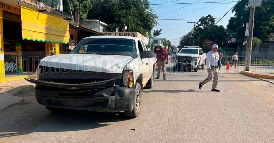 Presuntamente la unidad vial propiedad del Ayuntamiento local, fue impactada por una camioneta Chevrolet Silverado color blanco que circulaba con preferencia de paso.