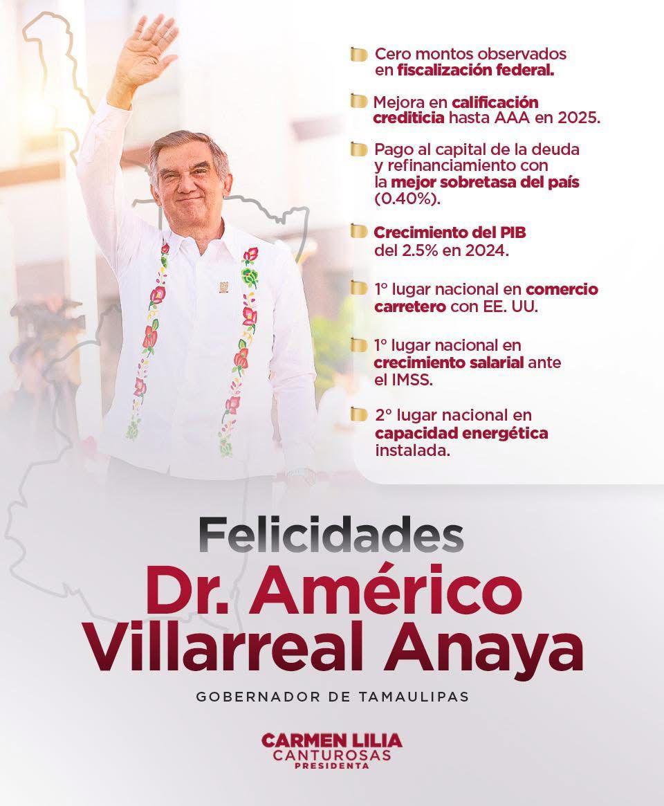De acuerdo con los datos difundidos, Tamaulipas registró un crecimiento del Producto Interno Bruto del 2.5 por ciento en 2024. Asimismo, ocupa el primer lugar nacional en comercio carretero con Estados Unidos y en crecimiento salarial ante el IMSS, además del segundo lugar en capacidad energética instalada.